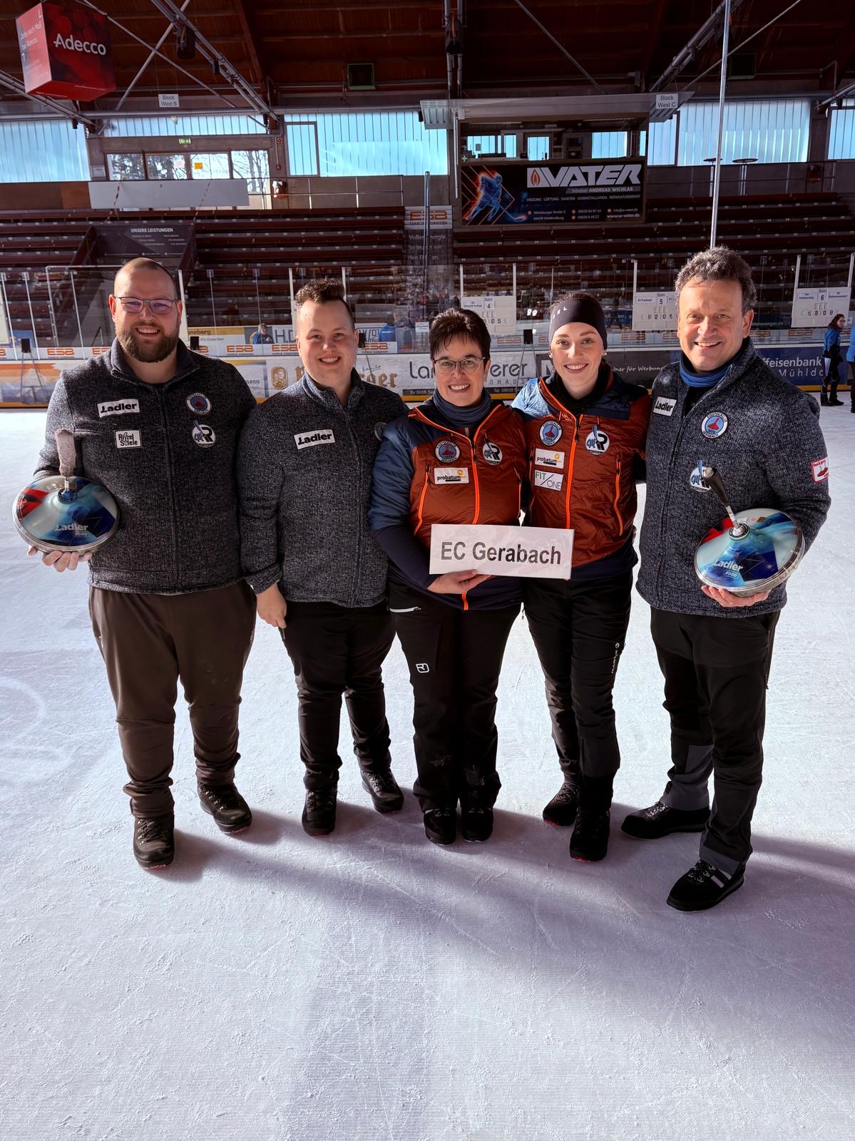 Pünktlich zum Wintersaisonabschluss finden immer die Deutschen Meisterschaften im Mixed-Wettbewerb statt. Als Titelverteidiger ging der Eisstockclub Gerabach mit Monika Goderbauer, Alina Mayer, Günther Mayer, Matthias Kappelmeier und Marco Rossberger an den Start. Im Eisstadion in Waldkraiburg wurden die Gerabacher Schützen dann in die starke Gruppe B gelost, in der die starken bayerischen Vereine aufeinander trafen. Eine knappe Niederlage, gegen späteren Zweitplatzierten, den FC Ottenzell, verhinderte den Einzug ins Halbfinale. Den Titel, den der EC Gerabach in den letzten Jahren viermal hintereinander gewinnen konnte, musste man diesmal dem TSV Hartpenning überlassen. Platz 3 ging an die Auswahl des TSV Rathsmannsdorf. Das Spiel um den 5. Gesamtplatz gewannen die EC.Schützen klar mit 8:2 Punkten gegen das Team des RSV Büblingshausen. Insgesamt waren 22 Mannschaften aus dem Bundesgebiet am Start. Für Alina Mayer steht in der nächsten Woche noch die Weltmeisterschaft im österreichischen Kapfenberg und Stanz auf dem Programm. Im Damenwettbewerb wird sie voraussichtlich in drei Disziplinen für Deutschland an den Start gehen. In den Wettbewerben Ziel Einzel, Ziel Mannschaft und Ziel Mixed wird sie wieder alles versuchen, für die deutschen Farben möglichst viele Medaillen zu erringen.