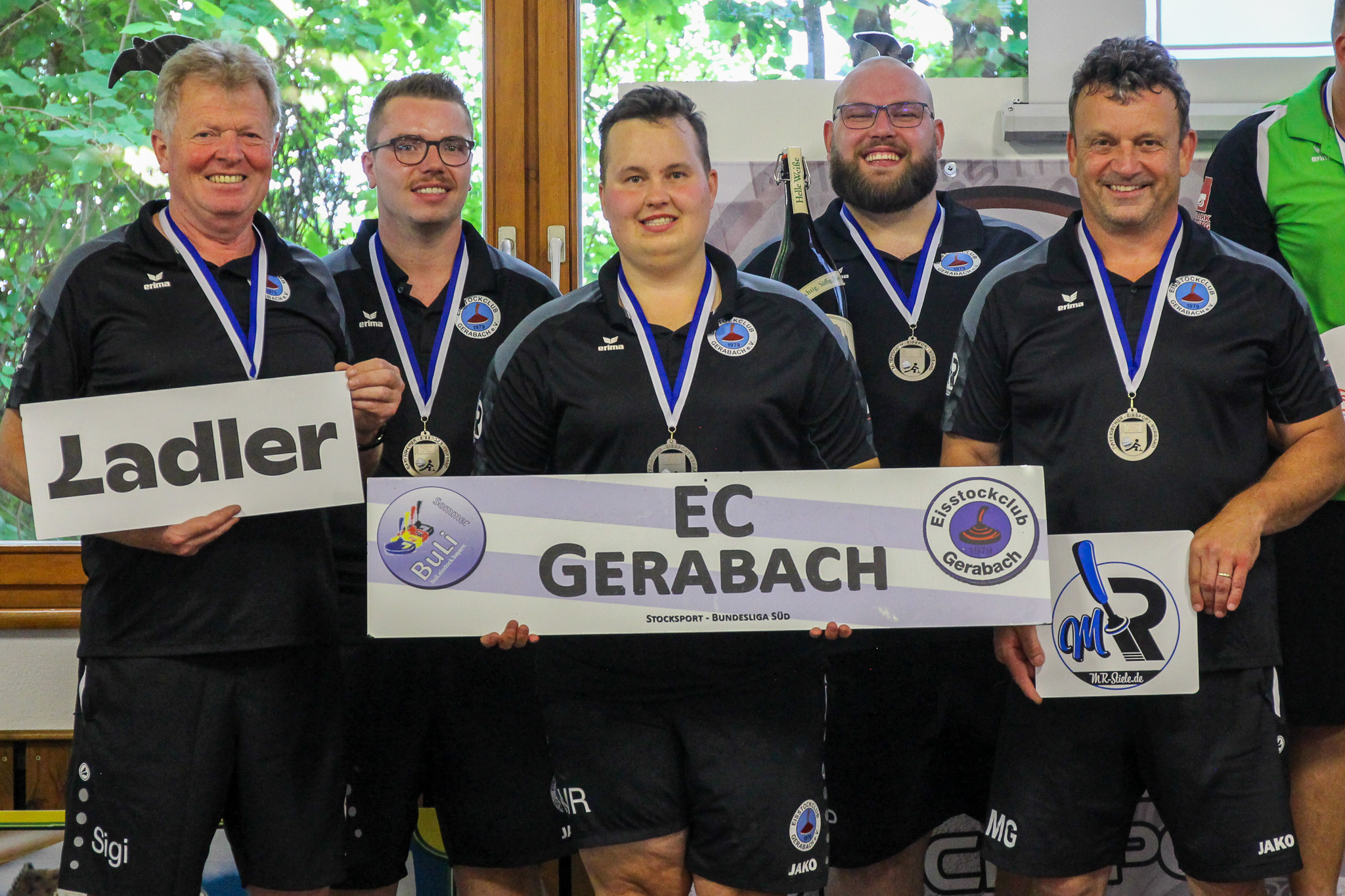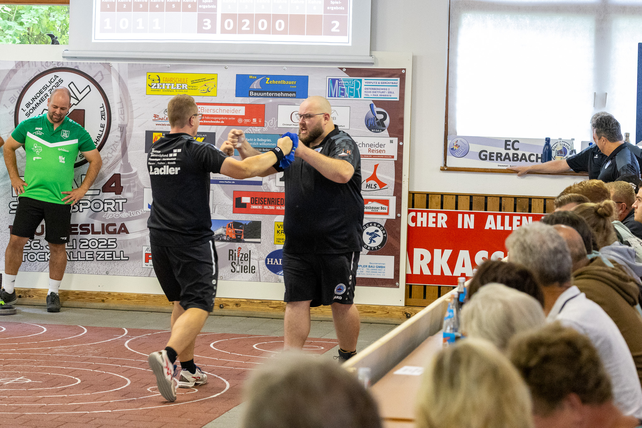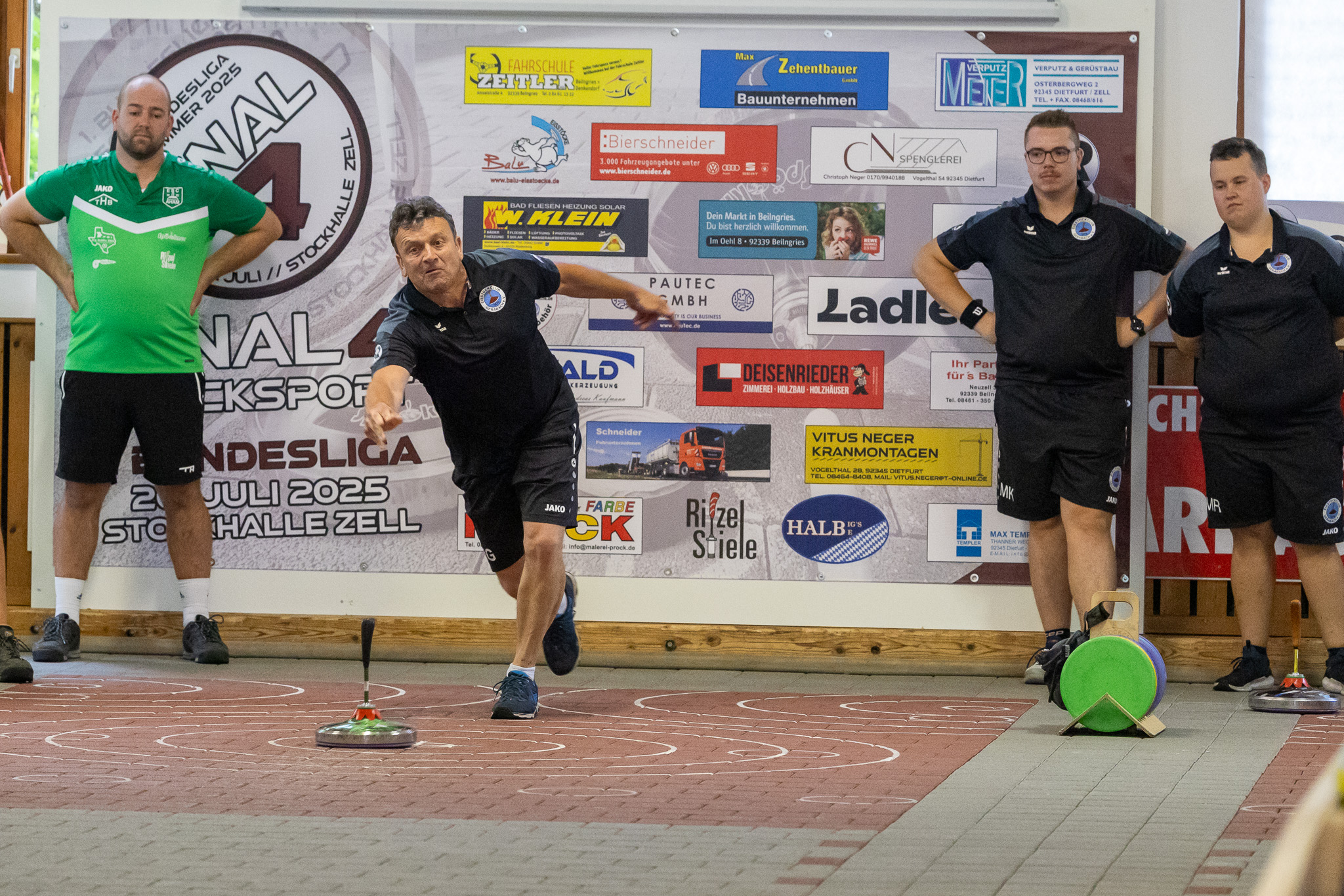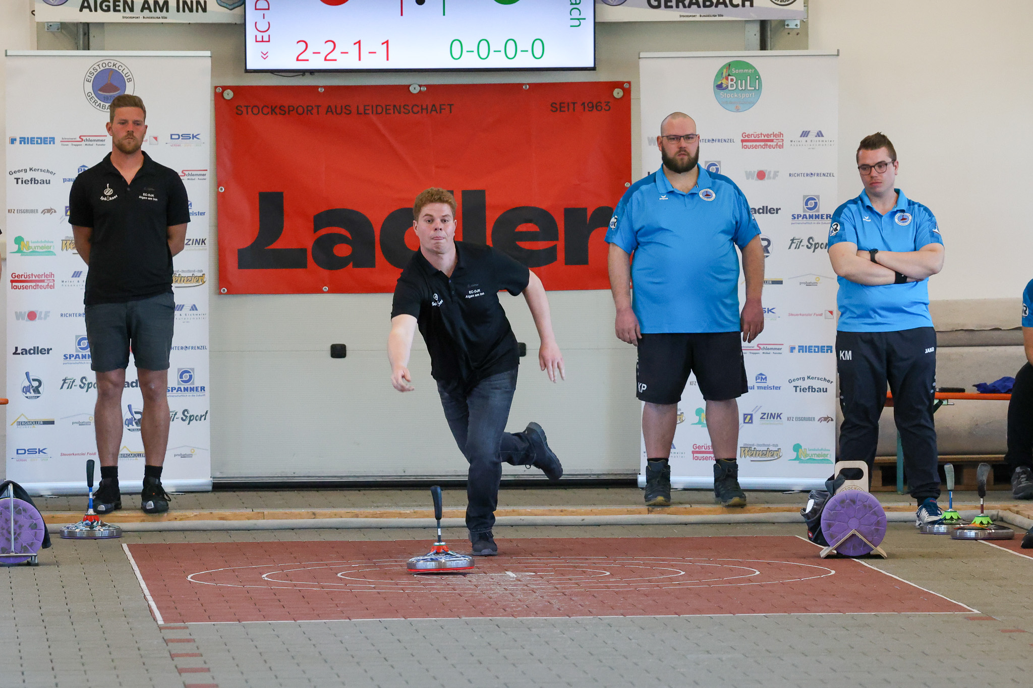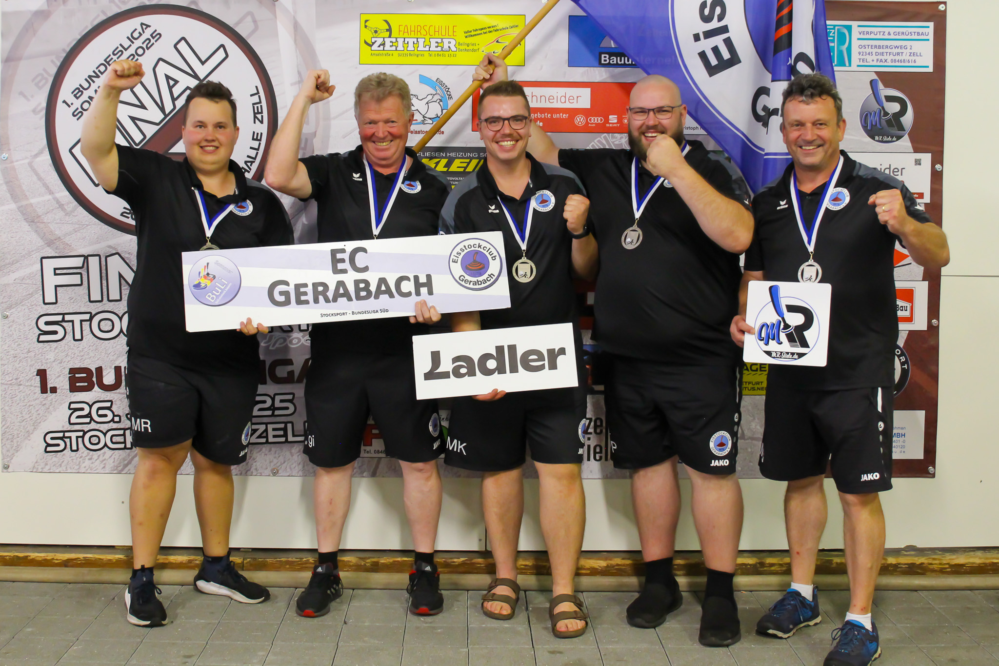 Ein wahrer Krimi spielte sich am Samstag in der Stockhalle des Eisstockclub Gerabach ab. Zum Viertelfinalspiel in der 1. Bundesliga Süd reiste der FC Ottenzell als Zweiter der Gruppe B, in die vereinseigene Halle an. Nach 2 Stunden Einspielzeit und der offiziellen Begrüßung pfiff Schiedsrichterin Claudia Mittermeier den Wettkampf pünktlich um 16.00 Uhr an. Günther Mayer, Matthias Kappelmaier, Matthias Kohlhuber und Marco Rossberger hatten sich unter der Woche akribisch auf den starken Gegner eingestellt und nochmal genau analysiert. Ein ausgeglichenes Bild zeigte sich dann nach dem ersten Spiel, dass 4:4 Unentschieden endete. Ebenfalls auf Augenhöhe begegneten sich die Teams im Spiel 2. Wieder endete es leistungsgerecht 4:4. Dann nach der Pause zeichneten sich die Gerabacher mit einer starken Leistung aus und holten sich mit 6:2 Punkten zwei Zähler. Der FC Ottenzell konnte aber dann im vierten Spiel zurückschlagen und sicherte sich zwei wichtige Punkte zum erneuten Ausgleich. So musste das letzte Spiel die Entscheidung um den Gesamtsieg bringen. Dann aber eine Hiobsbotschaft im Lager des EC Gerabach. Aufgrund einer Verletzung am Oberarm, konnte der Angriffsschütze Matthias Kappelmaier den Wettkampf nicht mehr fortsetzen. So kam schließlich Siegfried Sollinger zu seinem unerwarteten Spieleinsatz. Nach einer kurzen Einspielzeit übernahm er die Position des Moars und auch der Rest des Teams musste leicht umgestellt werden. Unbeirrt dessen zogen die Gerabacher aber weiter ihre Kreise und drückten den FCOttenzell immer weiter in die Defensive. Nach der 5 Kehre lag man im Endscheidungsspiel dann mit 4:1 in Front und es mussten nur noch zwei Stöcke entfernt werden. Dies übernahmen dann Matthias Kohlhuber und Günther Mayer in gekonnter weise und der Viertelfinalsieg war somit unter Dach und Fach. Bei der anschließenden Siegesfeier wurde dann schon fleißig über das anstehende Final Four Finale in Zell am 26. Juli 2025 diskutiert. Hier trifft der Eisstockclub Gerabach auf den ESC Aham, der wiederum den EC.Passau Neustift im Parallelspiel mit 7:1 Punkten ausschaltete. Zugleich bedeutet dieser Erfolg über den FC Ottenzell die Teilnahme an der Deutschen Meisterschaft.