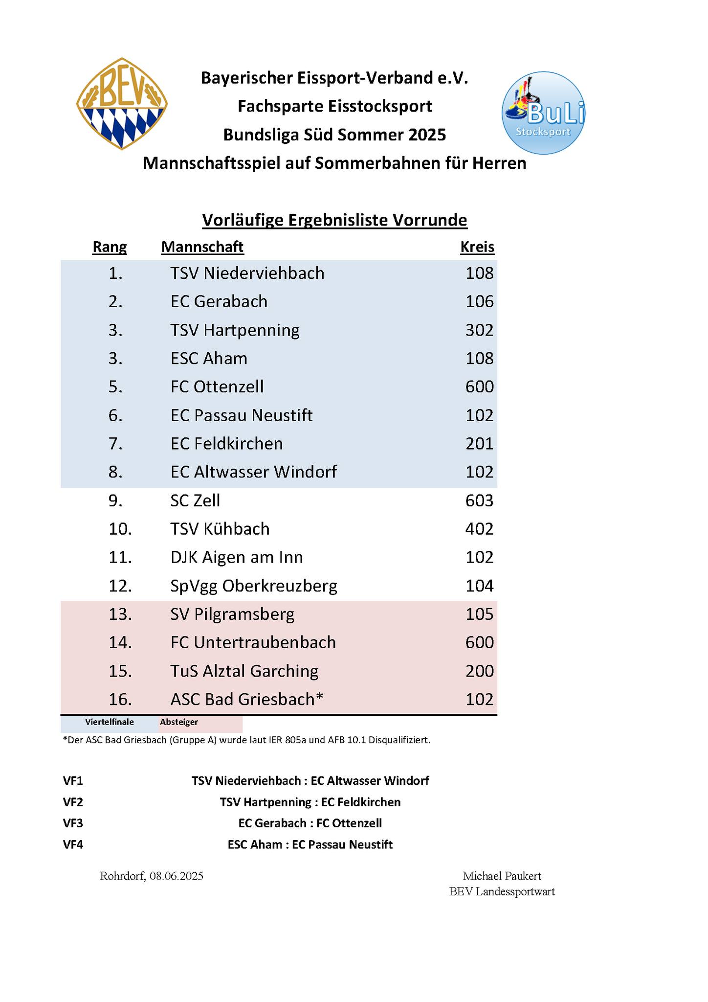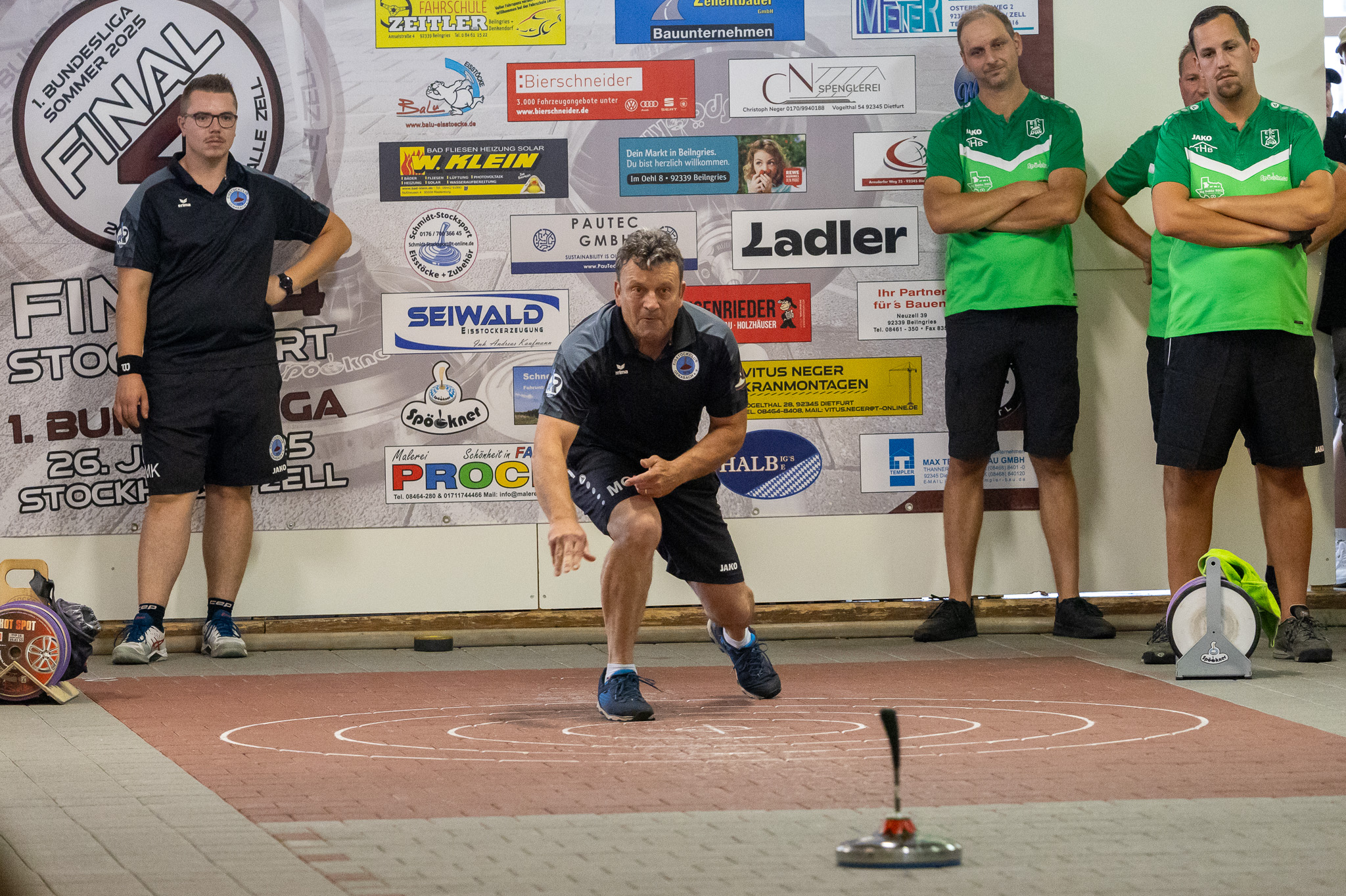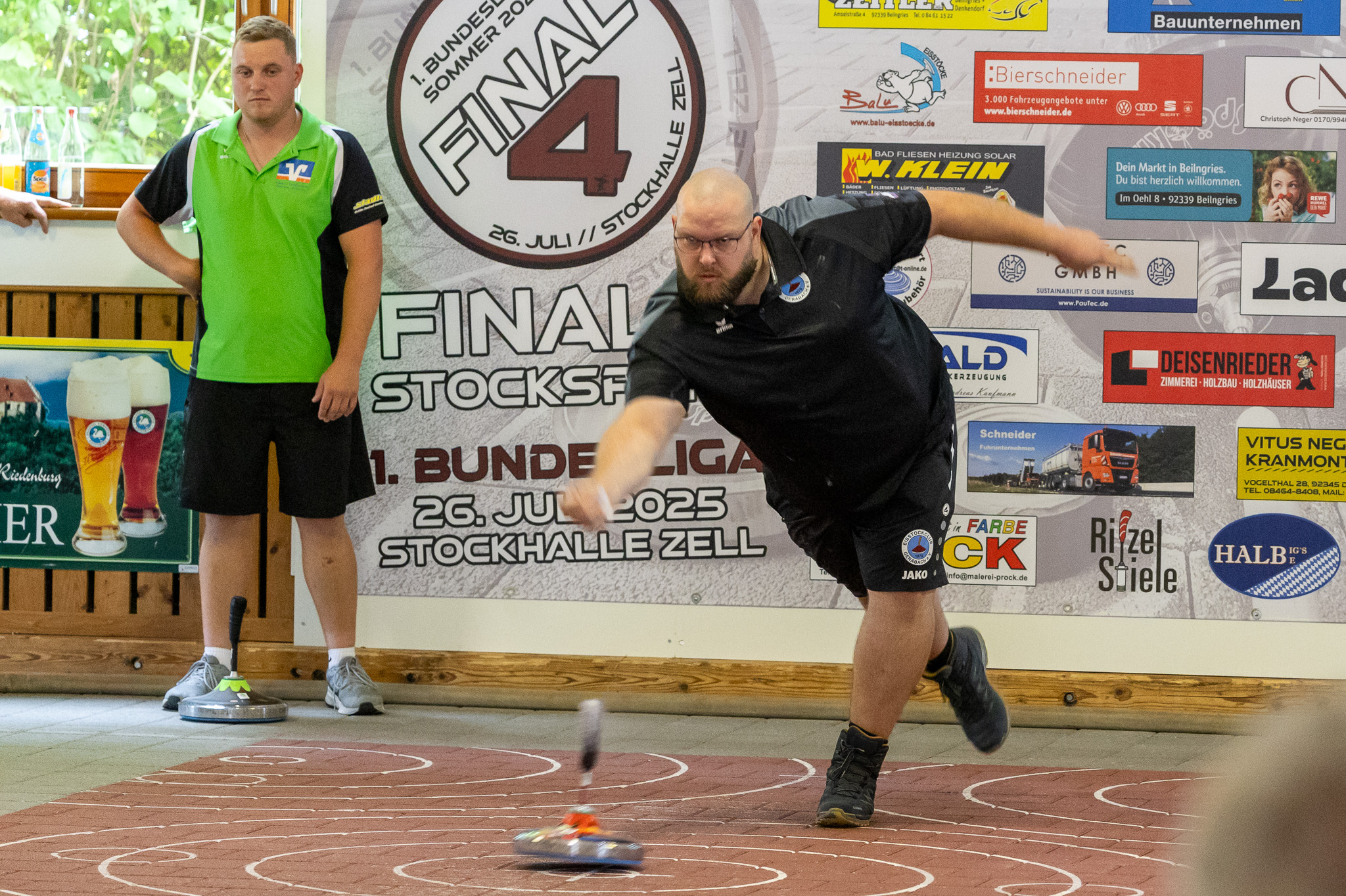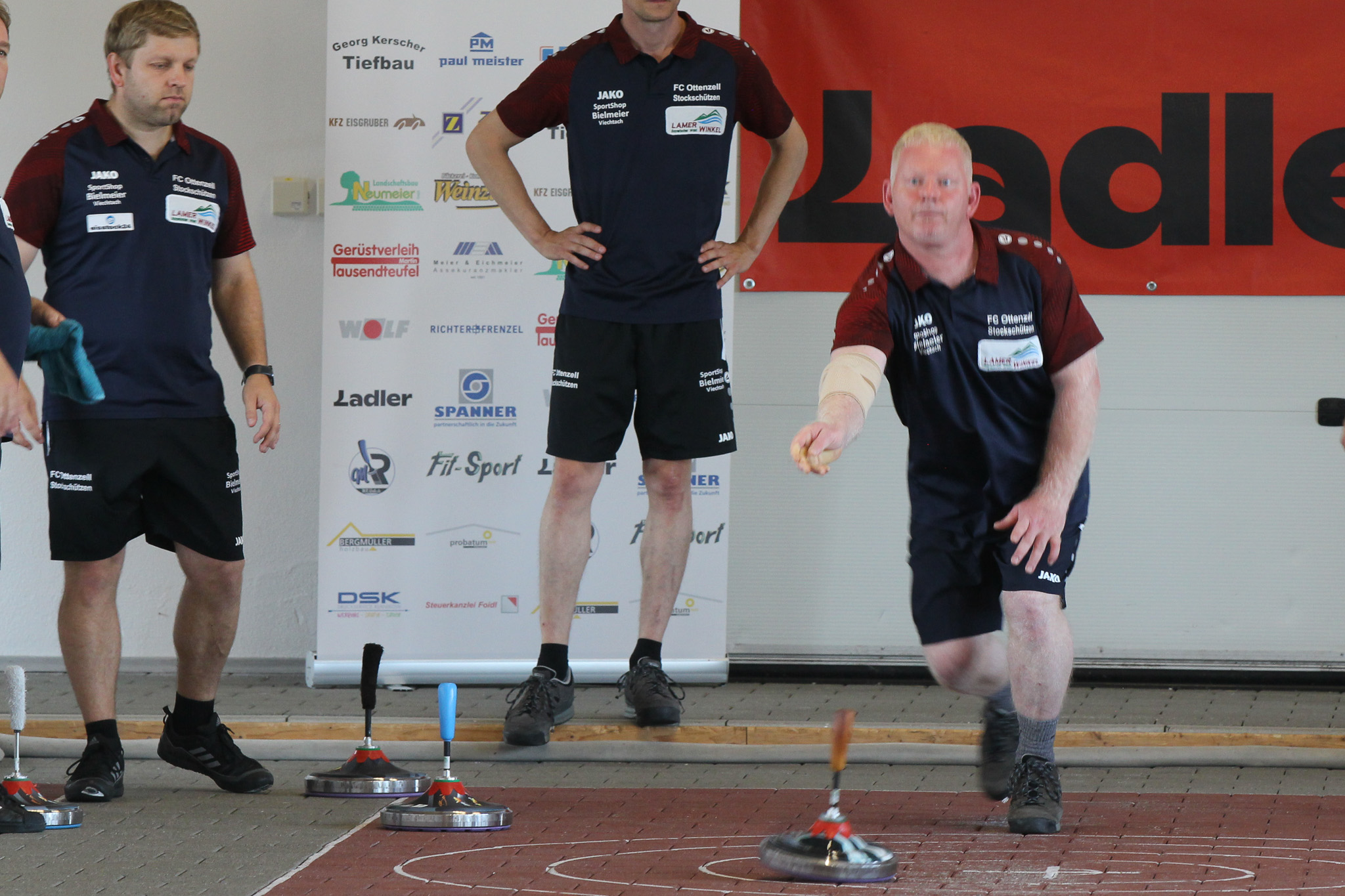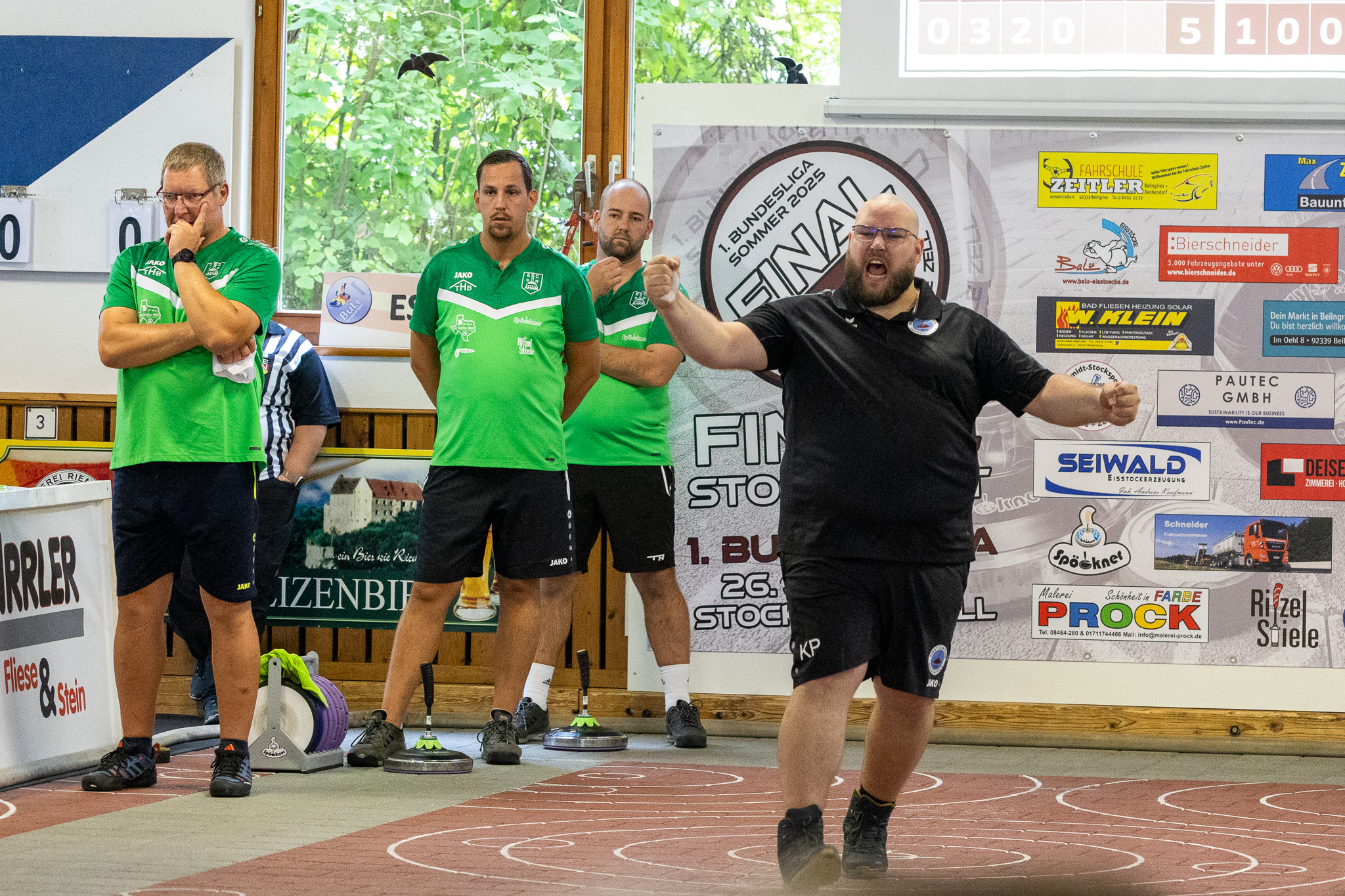 Ein wahrer Krimi spielte sich am Samstag in der Stockhalle des Eisstockclub Gerabach ab. Zum Viertelfinalspiel in der 1. Bundesliga Süd reiste der FC Ottenzell als Zweiter der Gruppe B, in die vereinseigene Halle an. Nach 2 Stunden Einspielzeit und der offiziellen Begrüßung pfiff Schiedsrichterin Claudia Mittermeier den Wettkampf pünktlich um 16.00 Uhr an. Günther Mayer, Matthias Kappelmaier, Matthias Kohlhuber und Marco Rossberger hatten sich unter der Woche akribisch auf den starken Gegner eingestellt und nochmal genau analysiert. Ein ausgeglichenes Bild zeigte sich dann nach dem ersten Spiel, dass 4:4 Unentschieden endete. Ebenfalls auf Augenhöhe begegneten sich die Teams im Spiel 2. Wieder endete es leistungsgerecht 4:4. Dann nach der Pause zeichneten sich die Gerabacher mit einer starken Leistung aus und holten sich mit 6:2 Punkten zwei Zähler. Der FC Ottenzell konnte aber dann im vierten Spiel zurückschlagen und sicherte sich zwei wichtige Punkte zum erneuten Ausgleich. So musste das letzte Spiel die Entscheidung um den Gesamtsieg bringen. Dann aber eine Hiobsbotschaft im Lager des EC Gerabach. Aufgrund einer Verletzung am Oberarm, konnte der Angriffsschütze Matthias Kappelmaier den Wettkampf nicht mehr fortsetzen. So kam schließlich Siegfried Sollinger zu seinem unerwarteten Spieleinsatz. Nach einer kurzen Einspielzeit übernahm er die Position des Moars und auch der Rest des Teams musste leicht umgestellt werden. Unbeirrt dessen zogen die Gerabacher aber weiter ihre Kreise und drückten den FCOttenzell immer weiter in die Defensive. Nach der 5 Kehre lag man im Endscheidungsspiel dann mit 4:1 in Front und es mussten nur noch zwei Stöcke entfernt werden. Dies übernahmen dann Matthias Kohlhuber und Günther Mayer in gekonnter weise und der Viertelfinalsieg war somit unter Dach und Fach. Bei der anschließenden Siegesfeier wurde dann schon fleißig über das anstehende Final Four Finale in Zell am 26. Juli 2025 diskutiert. Hier trifft der Eisstockclub Gerabach auf den ESC Aham, der wiederum den EC.Passau Neustift im Parallelspiel mit 7:1 Punkten ausschaltete. Zugleich bedeutet dieser Erfolg über den FC Ottenzell die Teilnahme an der Deutschen Meisterschaft.