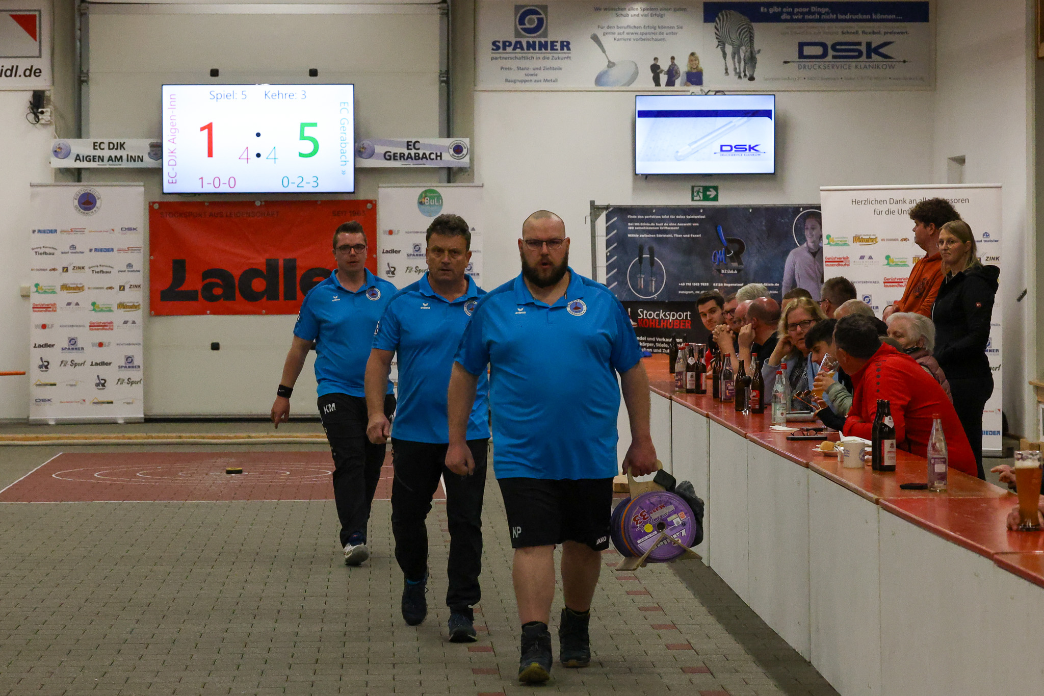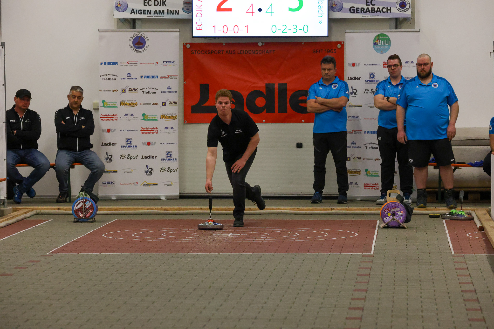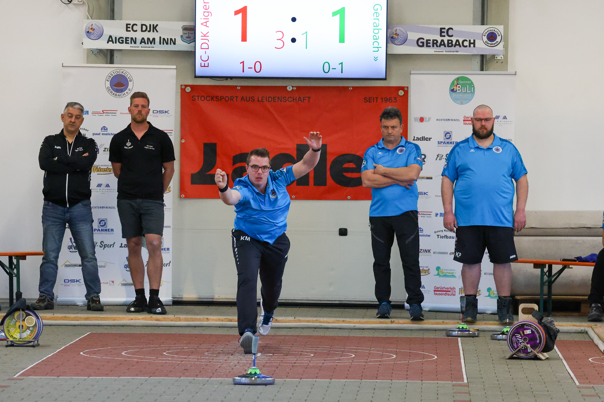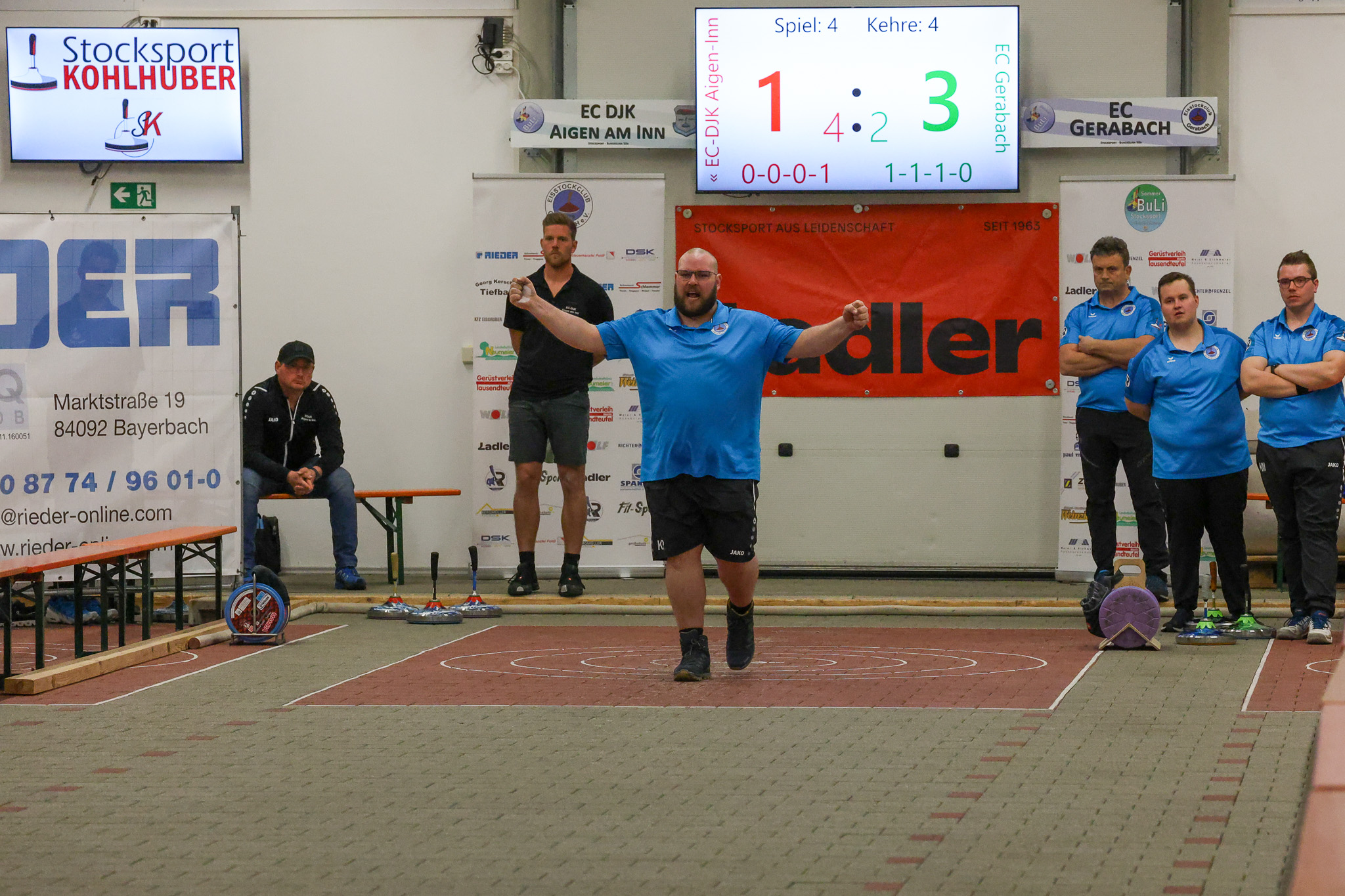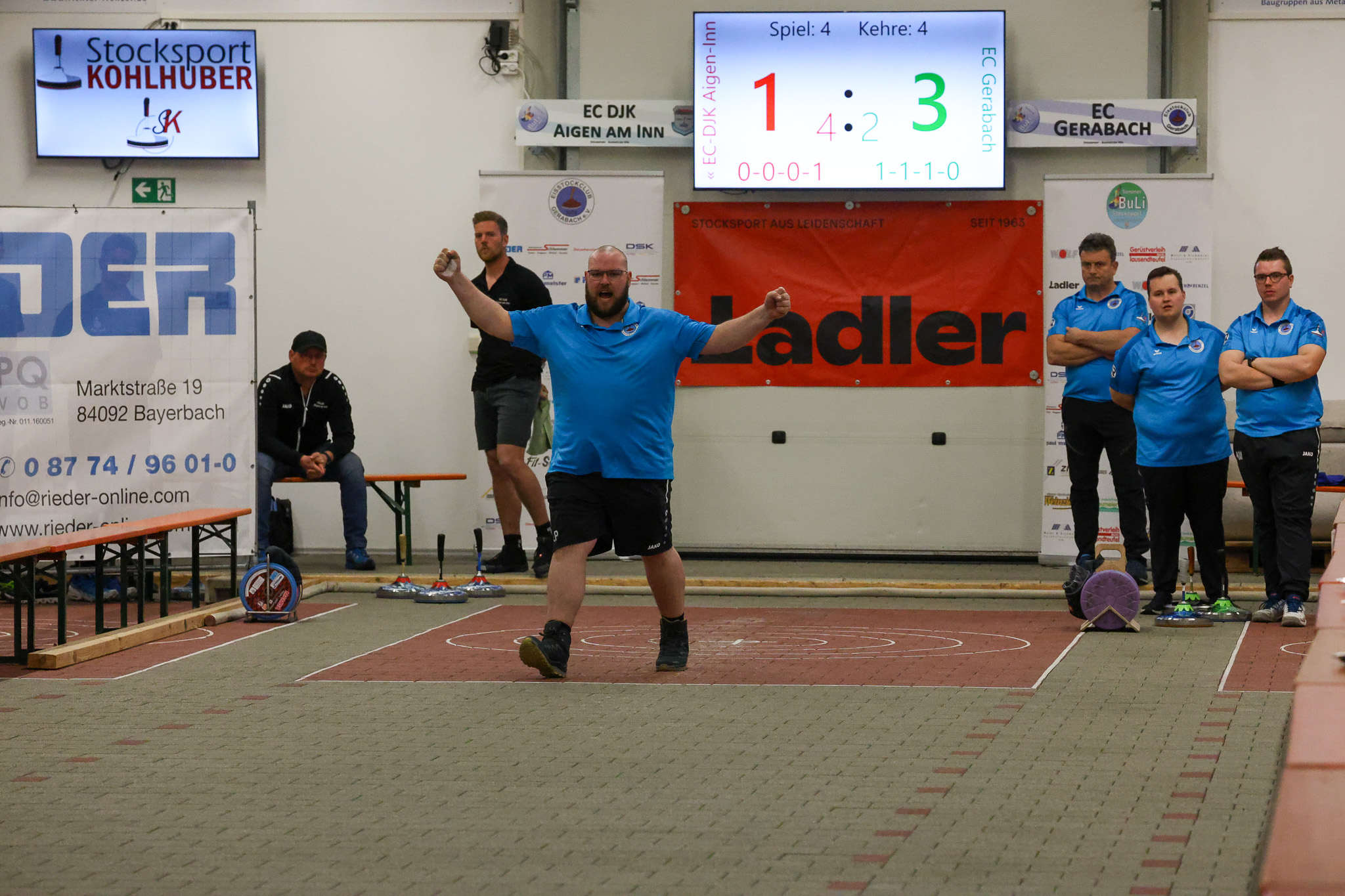 Zum ersten Punktspiel in der 1. Bundesliga Süd hatte der Eisstockclub Gerabach den letztjährigen Vizemeister, den EC-DJK Aign am Inn, zu Gast. Das Team um Günther Mayer, Marco Rossberger, Matthias Kappelmaier, Matthias Kohlhuber sowie Andreas Bruckner, der nach dem Abgang von Christian Hein die Rolle des Back Up eingenommen hat, hatte sich auf verschiedenen Turnieren und Freundschaftsspielen auf die neue Saison vorbereitet. Die 16 Mannschaften, die in vier Gruppen eingeteilt wurden, gingen am vergangenen Wochenende erstmals in den Best Of Five Spielmodus. Gleich zu Beginn agierten die Gerabacher recht ordentlich und so gelang auch im Spiel 1 ein 4:4 Unentschieden. Im zweiten Spiel blieben die Gäste fehlerfrei und gewannen das Spiel glatt mit 8:0 Punkten. So ging es mit 1:3 Punkten in die Pause. Im weiteren Verlauf steigerten sich die EC Schützen und erreichten im dritten Spiel ein leistungsgerechtes 3:3 Remis. Die zwei weiteren Spiele waren dann von ihrer Spannung am Siedepunkt. Knapp konnten sie die Gerabacher mit 4:3 Punkten im Spiel 4 durchsetzen. So musste dann der letzte Durchgang die Entscheidung bringen. Mit einer Klasseleistung gelang ein 7:3 Sieg und so gewannen die Gerabacher das Gesamtspiel mit 6:4 Punkten. Sie führen somit die Gruppe C in der Bundesliga Süd an. Am 26. April steht dann das erste Auswärtsspiel an. Gegen den EC Feldkirchen bei Berchtesgaden müssen die EC Akteure wieder an ihre Leistungsgrenze gehen, um Zählbares mitzunehmen.